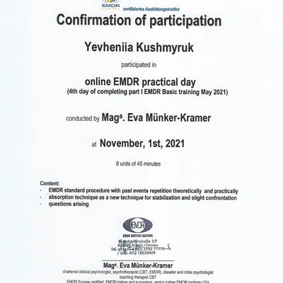 - членкиня Асоціації EMDR в Україні