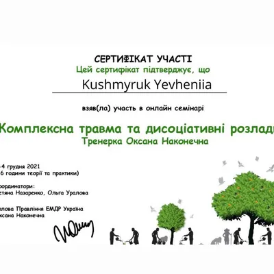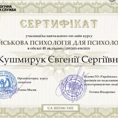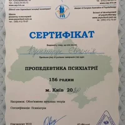 - членкиня Української спілки психотерапевтів